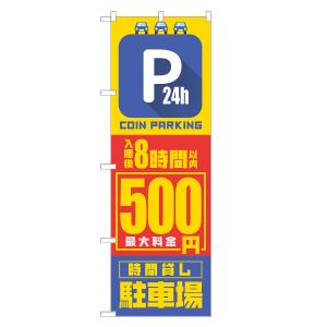 のぼり旗 コインパーキング 入庫後8時間以内 500円 のぼり 四方三巻縫製 S19-0204B