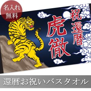【約35営業日出荷】 還暦祝い 名入れ 男性 女性 男女兼用 プレゼント 60歳 おしゃれ 赤いもの 赤い品物 和風 虎 寅年 今治製 日本製 バスタオル