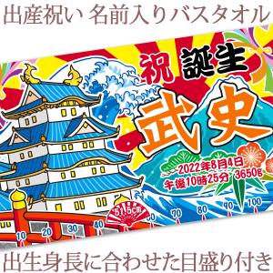 【約35営業日出荷】 出産祝い 名入れ 名前入り [ 大漁旗 日本の城と富士山 ] お城 バスタオル 和風 男の子 女の子 出産内祝い 七五三 おもしろ 日本製