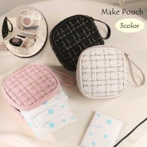 メイクポーチ コスメ収納 ミニポーチ サニタリーポーチ 生理用品入れ ナプキン入れ 小物入れ 収納ケース ストラップ付き ツイード柄 メッシュポケット