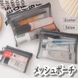 コスメポーチ 化粧ポーチ メッシュポーチ 収納雑貨 小物入れ 長方形 通気性 無地 ブラック シンプル 旅行 レジャー 温泉 薄型 ファスナー