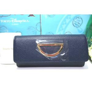 送料無料 サマンサタバサ 限定 ミッキーマウス MICKEY MOUSE ロゴ入 牛革 かぶせ 長財布 紺 新品 証明書付 ディズニー ミニー ユニセックス ギフト包装可