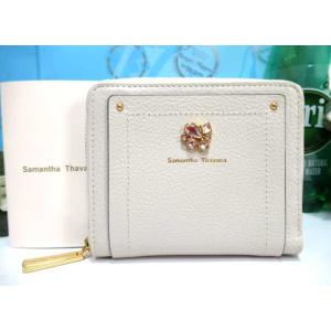 送料無料 サマンサタバサ キラキラ ビジュー付 ロゴ入 牛革 二つ折り財布 折財布 ミニ財布 オフホワイト 新品 証明書付 ギフト包装無料 開運 金運up 春財布