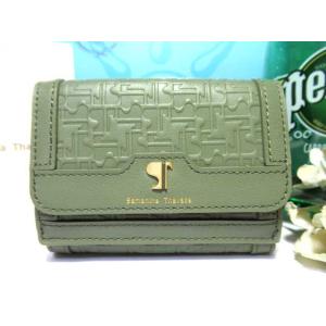 送料無料 サマンサタバサ ST ロゴ エンブレム付 型押 牛革 ミニ財布 三つ折り財布 折財布 カーキ 未使用 タグ付 展示サンプル品 開運 金運UP ユニセックス