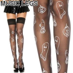 MusicLegs(ミュージックレッグス)パンプキン&ゴーストプリントシアーサイハイストッキング/タイツ ML4514黒白ニーハイブラックハロウィンコスプレコスチューム
