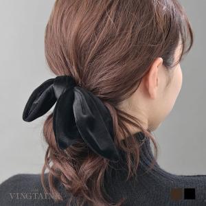 シュシュ ベロア リボン アシンメトリー レディース 大人 まとめ髪 ヘアアクセ H7957