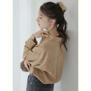 ブラウス シャツ 「洗える」シュシュSETピーチサテン起毛シャツ レディース