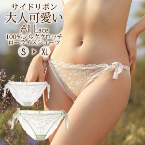 ショーツ 100%シルククロッチ 総レース シースルーショーツ 透け感 レース ボタニカル柄 葉っぱ柄 透け感 2カラー S M L XL