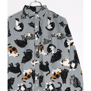 シャツ 日本製 ネコ柄 長袖レギュラーシャツ/猫柄 メンズ レディース
