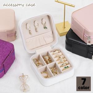 アクセサリーケース ジュエリーボックス 小物入れ 収納ボックス ファスナー 仕切り コンパクト レザー調 無地 シンプル 持ち運び 携帯 四角形 スク