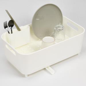 水切りラック スキット 水が流れるトレー付水切りバスケット スリム ホワイト ( 水切りかご 水切りカゴ 水切りバスケット 水切り シンク上 日本製 )