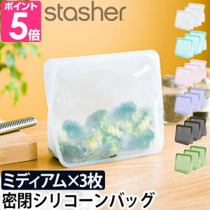 保存容器 密閉 ジップバッグ シリコンジップバッグ フリーザーバッグ stasher スタッシャー シリコーンバッグ スタンドアップ ミディアム3枚セット