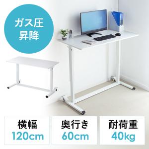 ガス圧式昇降デスク 幅120cm 奥行60cm スタンディングデスク 軽量 作業台 座りすぎ防止 ホワイト EZ1-ERD041W