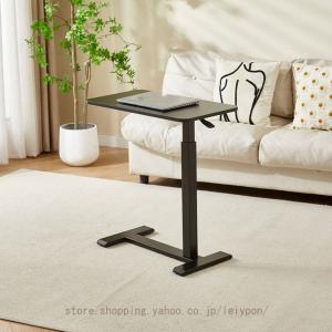 昇降式テーブル ガス圧 無段階昇降 レバー式 サイドテーブル キャスター付き ストッパー付き リフティング スタンディング デスク 木目柄 PVC ソファ ベッド