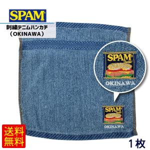 SPAMスパム 刺繍デニムハンカチ OKINAWA /沖縄お土産 雑貨 (M便)