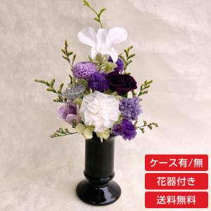 枯れない仏花 仏花 プリザーブドフラワー お仏壇 神棚 お供え 藤色 小花 小さめ 花器付き ケースあり/なし選べます 「祈り」
