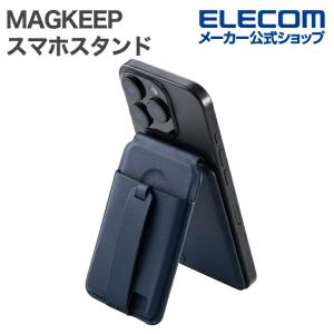 エレコム スマホスタンド MAGKEEP カード スタンド バンド付き 動画視聴 カードポケット付き 2枚収納 ネイビー ELECOM AMS-MAGCSBNV