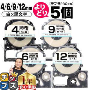 テプラテープ 白 4mm/6mm/9mm/12mm(テープ幅) テプラPRO用互換 キングジム対応 自由選択 5個 白/黒文字 互換テープ 強粘着 SS4KW SS6KW SS9KW SS12KW