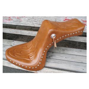 American Dreams アメリカンドリームス キング&クィーンシート ファイヤーパターン Wスタッド 茶レザー コンチョ付 ドラッグスター400クラシック シート 外装