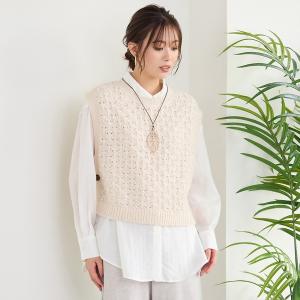 ニット セーター シャツレイヤード風ケーブルニット レディース