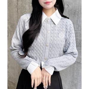 ニット セーター シャツドッキングケーブルニットトップス レディース