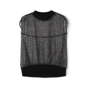 アンサンブル メッシュニット シャツ カーディガン + Tシャツ セット