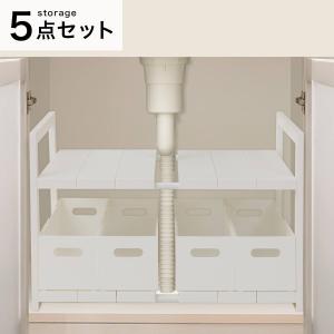 【シンク下収納5点セット】2段伸縮ラック+整理ボックス 奥行き40cm WH ニトリ