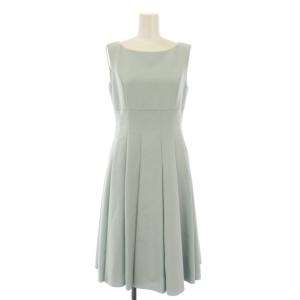 フォクシーニューヨーク スリムタックドレス フレアワンピース ひざ丈 ノースリーブ クルーネック ストレッチ 38 水色 38327