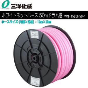三洋化成 給水・散水用ホース SHホワイトネットホース 50mドラム巻き [WN-1520H50P] ホースサイズ:15mm×20mm ピンク