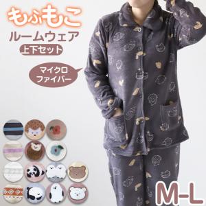 パジャマ レディース 冬 かわいい あったかい ルームウェア 長袖 婦人 前開き 部屋着 M-L もこもこ 柄 上下 花柄 シマエナガ クマ ハリネズミ パンダ