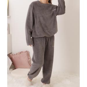 パジャマ ルームウェア アルファベット刺繍付きふわもこルームウエア レディース