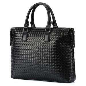 [ゴルウィス] 2WAY レザー ビジネス バッグ 格子編み 編み込み 13インチ A4 大容量 撥水加工 bag0017 メンズ ブラック