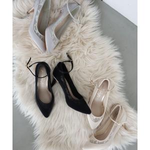 パンプス レース使いパンプス アンクルストラップ付き
