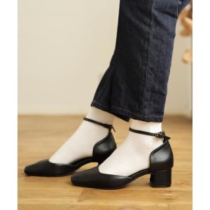 パンプス ストラップ レディース 柔らか 歩きやすい かかとが踏める 2WAY メリージェーン 4cm太ヒールamiamiアミアミSlV