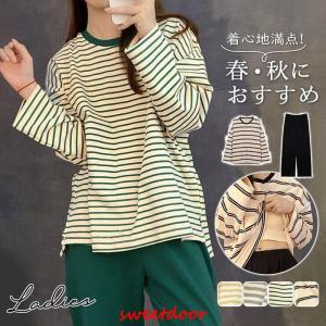 パジャマ 上下セット ルームウェア レディース ナイトウェア ストライプ 長袖 長ズボン かわいい 寝間着 薄手 ゆったり 通気性 柔らかい 秋 春