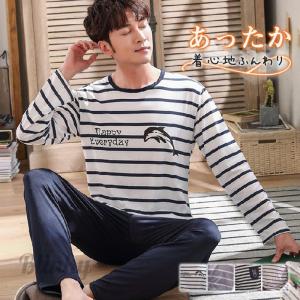 パジャマ メンズ 長袖 ルームウェア ストライプ プリント 部屋着 肌に優しい 上下セット 柔らかい 春秋冬 父の日 寝巻き 長ズボン おしゃれ 快適