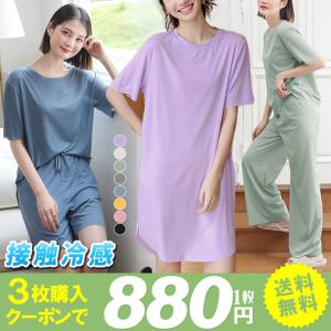 全品Point10倍!最大倍率50% 冷感ルームウェア 接触冷感 セットアップ 部屋着 リラックス 半袖トップス×ロングパンツ レディース