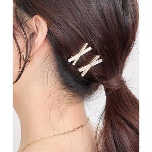 ヘアクリップ クロスパールクリップ2個セット