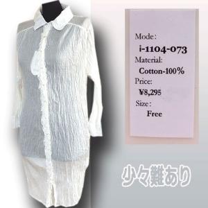 白色しわ加工7分袖ロングブラウス(後ろにレースのポイントあり)