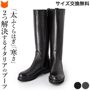 ロングブーツ レディース 本革 歩きやすい 厚底 イタリア ブランド ゆったり ブラック グレー 冬 ムートン サイドジップ