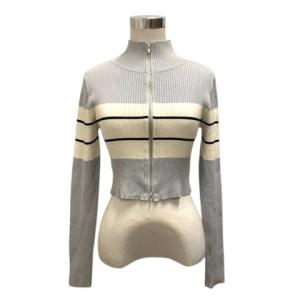 フーズフーチコ who's who Chico カットソー フロントジップ リブ ライン ショート丈 長袖 F グレー 白 ホワイト 黒 ブラック レディース