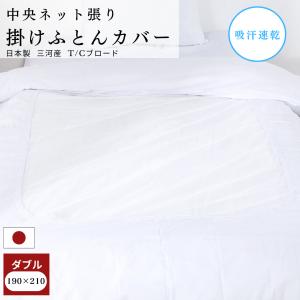 【安心の日本製】掛布団カバー 中央ネット張り 190x210 ダブルロング T/Cブロード 国産 三河産 白 掛けふとんカバー 和風 旅館風 来客用 洗濯可