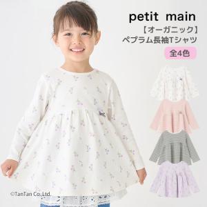 ペプラム 長袖Tシャツ オーガニック プティマイン 総柄 りぼん ワンポイント 女の子 キッズ 子供用 80-130cm petit main K 新作 2601 68