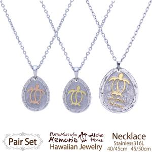 ハワイアンジュエリー ペアアクセサリー ペアネックレス ホヌ ネックレス ペア 金属アレルギー ステンレスネックレス カップル お揃い