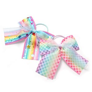 ヘアゴム レインボー I28- グログラン オーガンジーチュール ダブルリボン ポニーテール ヘアアクセサリー