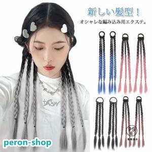 2点セットポニーテール三つ編みエクステつけ毛自然ドレッドウィッグへアゴム編み込みカラーグラデーションエクステンションつけ毛