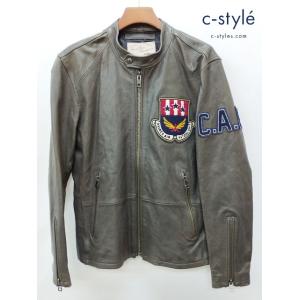 L651 [人気] AVIREX アヴィレックス ライダースジャケット XL ラムレザー グレー系 6171060 | N★