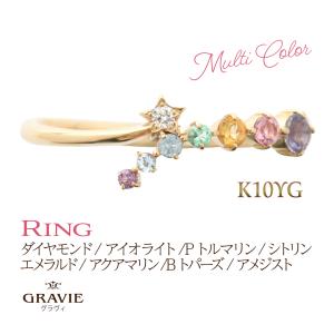 【5%OFFクーポン】リング K10 YG 10金 ダイヤモンド マルチカラー サークル アミュレット 記念日 お祝い 3月誕生石 レディース おしゃれ