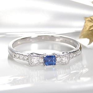 18金 リング レディース 指輪 リボン サファイア ダイヤモンド ミル打ち CAR-0130
