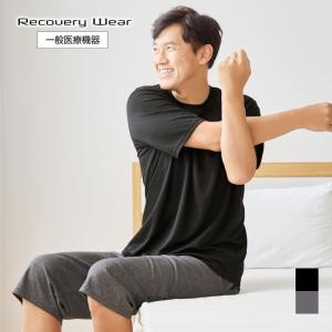 リカバリーウェア メンズ 上下セット 一般医療機器 半袖 7分丈パンツ 疲労回復 パジャマ 遠赤外線 血行促進 コリ緩和 ストレッチ 部屋着 丸洗いOK